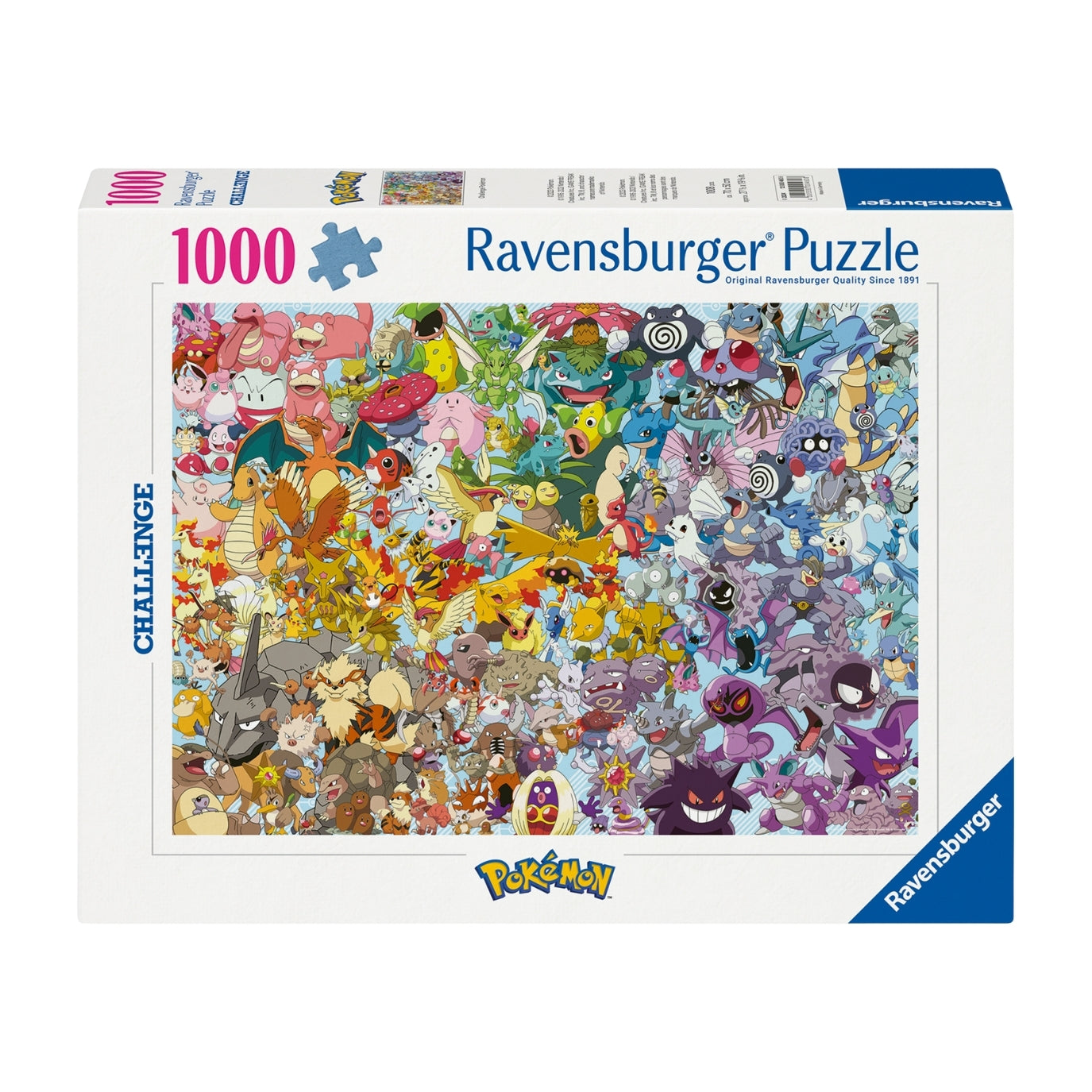 Preparado para um verdadeiro desafio? O Puzzle Ravensburger Pokémon Challenge de 1000 peças é perfeito para fãs que adoram testar a atenção ao detalhe. Com uma arte vibrante e repleta de personagens Pokémon, é uma experiência divertida, imersiva e ideal para colecionadores.