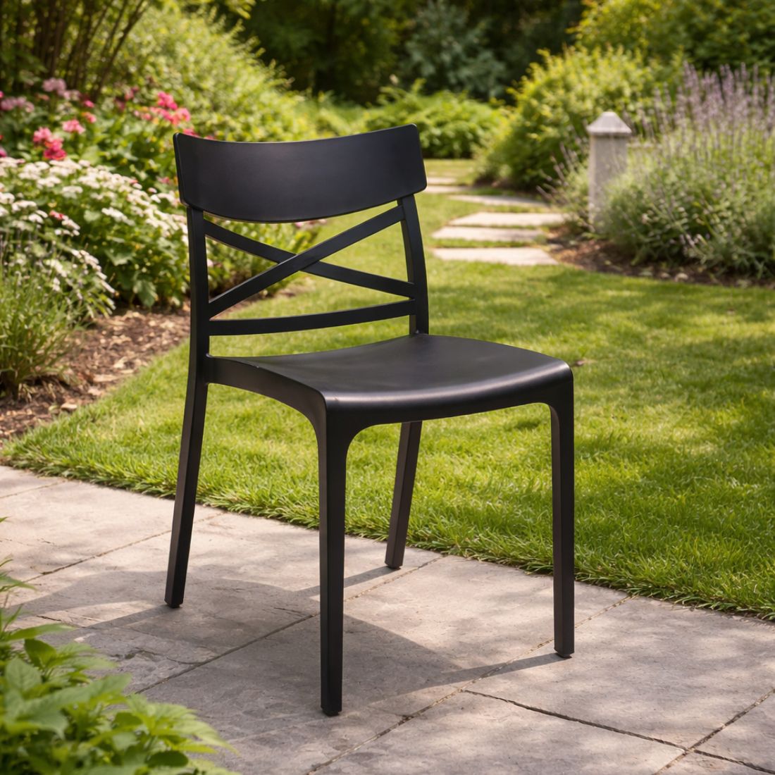 Com a Cadeira Croix da BICA, cria uma zona de refeições exterior simples e funcional.