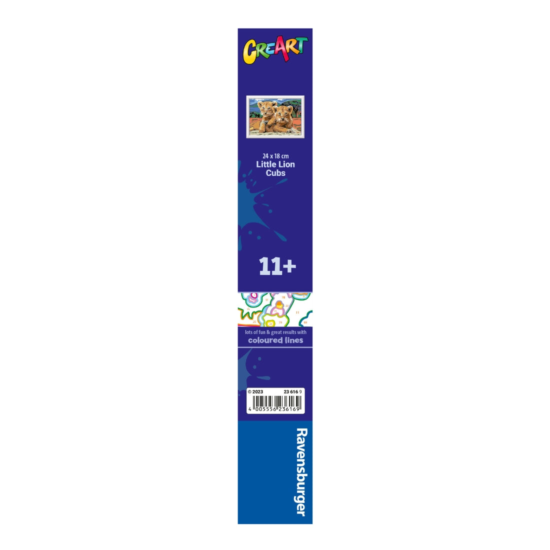 Explora o lado mais doce da savana com este kit CreArt da Ravensburger, Série D Classic! Duas crias de leão partilham um momento de ternura num cenário natural, ideal para crianças a partir dos 11 anos.