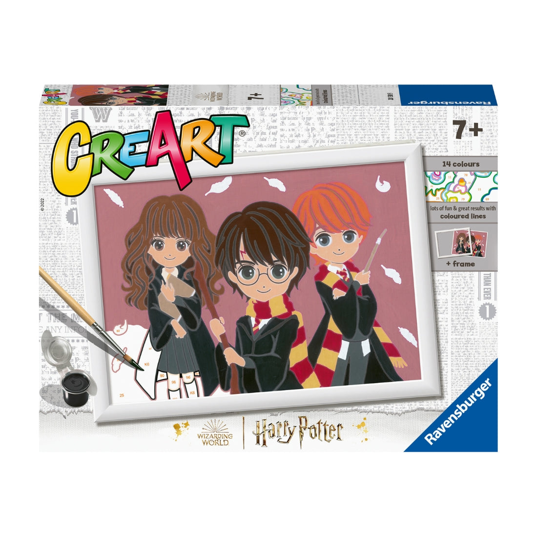 Revive a magia de Hogwarts com este kit CreArt da Ravensburger, Série D Licença! Harry, Hermione e Ron estão prontos para mais uma aventura, agora nas tuas mãos criativas.