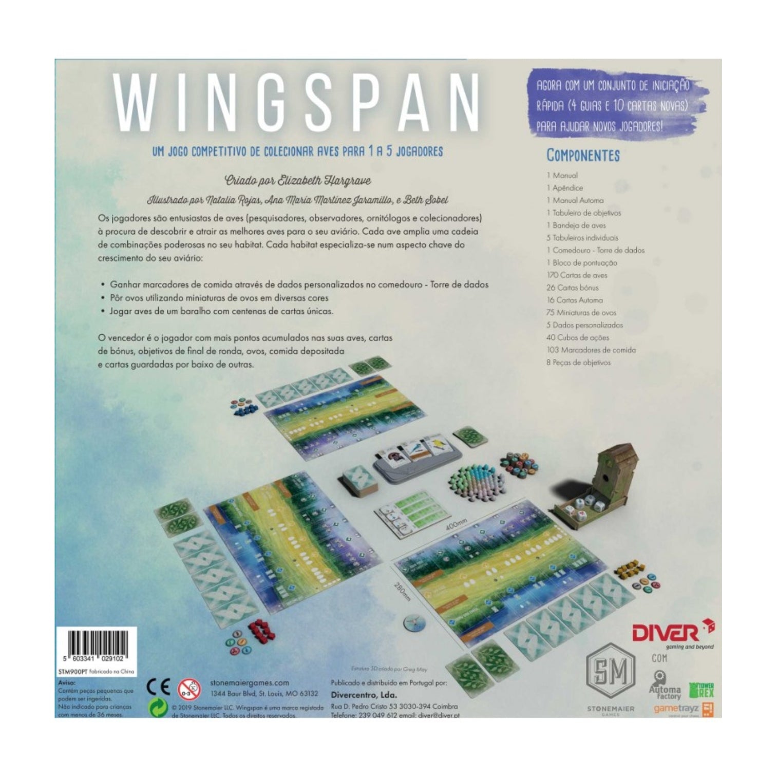 A 2ª edição traz melhorias de produção, pequenos ajustes editoriais e componentes atualizados, mantendo toda a profundidade estratégica e beleza que tornaram Wingspan um fenómeno global. Com cartas ilustradas de forma magnífica, partidas envolventes e regras acessíveis, é ideal tanto para novos jogadores como para quem já conhece o universo Wingspan.