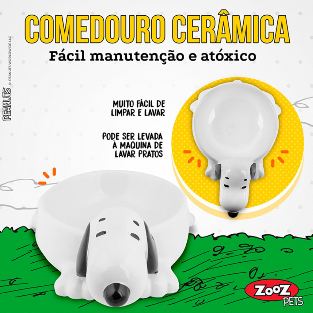 Torne as refeições do seu animal de estimação mais divertidas com o Comedouro de Cerâmica 3D Snoopy da Zooz Pets.