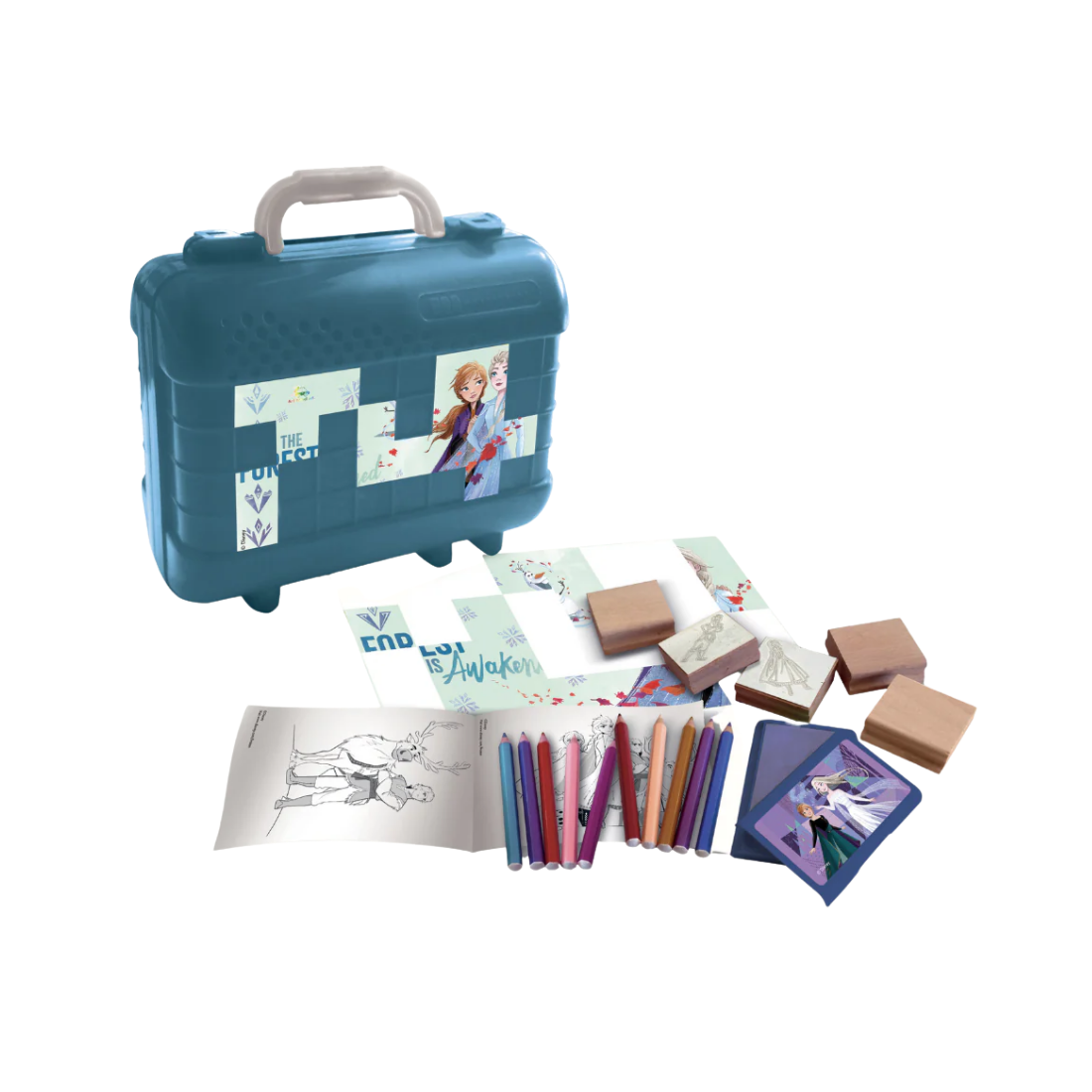 Este combo inclui Mochila Kit de Carimbos Frozen + Kit Carimbos Frozen, perfeito para criar cartões, embrulhos e lembranças encantadoras com Anna e Elsa.