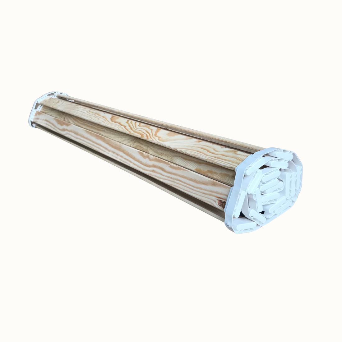Entregue em kit de montagem, com peças desmontadas e o estrado enrolado, garante um processo simples e intuitivo, perfeito para quem valoriza a praticidade.